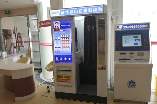 据了解,在新容奇医院的自助服务区看到,驾驶人手持身份证,在交警车驾管业务自助终端机前选择相应业务,根据自助终端机的文字和语音提示操作办理,中间需要输入验证码等,办理过程不超过3分钟,整个流程操作简单,方便快捷。 这台自助一体机在顺德首次出现,这台机器功能很强大,依托大数据平台,可以为驾驶人自助办理驾驶证查询、驾驶证遗失补证、驾驶证损毁补证、驾驶证期满换证,行驶证换证、丢失换证及六年免检签章、信息查询等8项业务,而且自助受理机还包含了自助照相机,拍照人员只需通过屏幕上的文字和语音提示,即可自行完成拍摄,简单易懂。整个拍照过程最快只需30秒,按下打印键,照片立刻打印出来,电子照片自动存入指定的照片库,群众可以通过扫二维码缴纳照片工本费,整个拍照过程都可以通过语音提示轻松完成。市民在医院体检后,办理驾驶证可享受“通道式”服务。