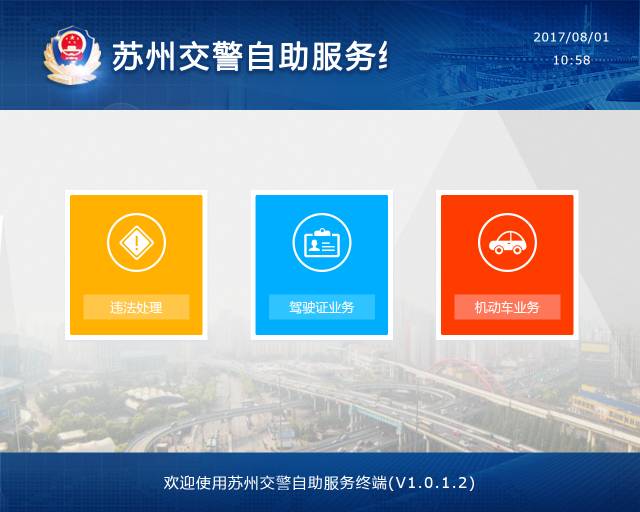 该交通违法处理自助设备仅限于苏州大市范围内的驾驶证、行驶证业务,请带好本人身份证原件(临时身份证不可用)、驾驶证原件,关联本人驾驶证信息的手机(以便接收验证信息)。
